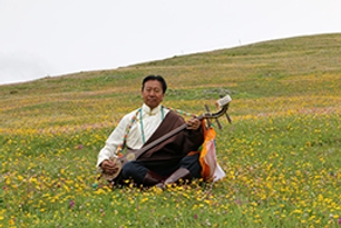 华尔贡,1949年出生,男,藏族,甘肃甘南人,国家级非物质文化遗产代表性项目藏族民歌(甘南藏族民歌)代表性传承人。藏族民歌可分为山歌(牧歌)、劳动歌、爱情歌、风俗歌、诵经调等类型。甘南藏族民歌是流行于甘肃省甘南藏族自治州的一种歌唱形式,主要由艺人口传心授。甘南藏族民歌集中反映了当地人的生活习俗和审美观念,是研究当地历史文化的重要参考材料。华尔贡致力于甘南藏族民歌的收集、整理和传承教学,培养出许多优秀的弹唱人才,推动了甘南藏族民歌弹唱艺术的发展与传播。